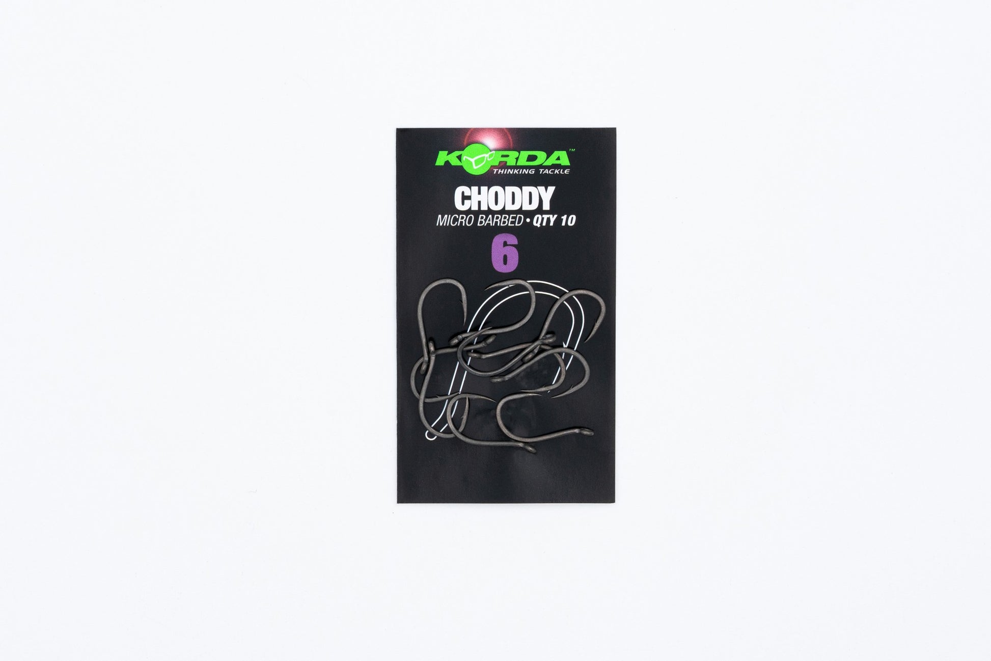 Deze haak is speciaal bedoeld voor gebruik met stijve onderlijnen en rigpresentaties zoals de chod rig of de hinged stiff rig, maar hij is ook te gebruiken bij andere pop-up-presentaties. Hij heeft een naar buiten gedraaid oog om te zorgen voor een doorlopende curve van de onderlijn naar de haak bij gebruik van stijve presentaties. De vorm is verder ontleend aan het iconische Wide Gape-patroon, zij het met een iets dikkere draad. Het is een ongelofelijk sterke haak, waar Darrell Peck over kan meepraten, aangezien hij karpers van ruim 30 kilo heeft gevangen met een maat 8. De licht gebogen punt is vlijmscherp en de weerhaak is dermate klein dat hij de penetratie niet belemmert, maar na de inhaking wel zorgt dat de haak op zijn plek blijft. De Choddy is verkrijgbaar met en zonder weerhaak, en er is keuze uit de maten 12, 10, 8, 6 en 4, met tien haken per pakje.