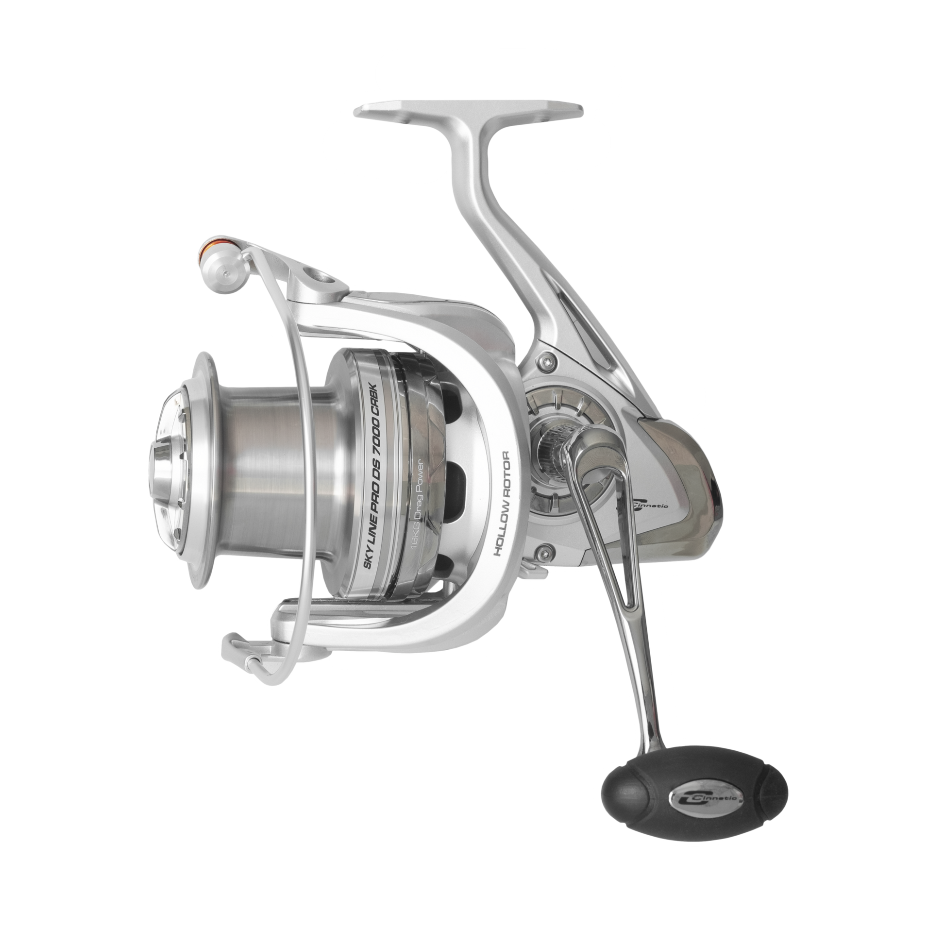 De Sky Line Pro DS CRBK is een nauwkeurige en compacte molen die kracht en souplesse perfect weet te combineren. Dankzij de machinaal gefreesde aluminium spoel met dubbele anodisatie en een progressief slipsysteem tot maar liefst 16 kg ben je verzekerd van maximale controle, zelfs tijdens de dril van de sterkste vissen. Het slanke CRBK-ontwerp biedt extra stijfheid en zorgt voor topprestaties bij elke worp. De holle rotor met 4+1 roestvrijstalen kogellagers garandeert een vloeiende en stille inhaalbeweging, terwijl het Rotor Brake System voorkomt dat de beugel onverwacht terugschiet tijdens het werpen. De sterke metalen slinger met antislipknop ligt comfortabel in de hand en geeft je de nodige grip, zelfs onder zware omstandigheden. Ook de details zijn tot in de puntjes uitgewerkt: de TN gecoate lijnroller en de 100% roestvrijstalen hoofdas verhogen de duurzaamheid, terwijl het Worm Shaft-systeem met een lange slag van 65 mm zorgt voor een perfecte lijnoplegging en indrukwekkende werpafstanden. Deze molen combineert kracht, precisie en een sportief elegant design, waardoor hij de ideale keuze is voor de moderne sportvisser.